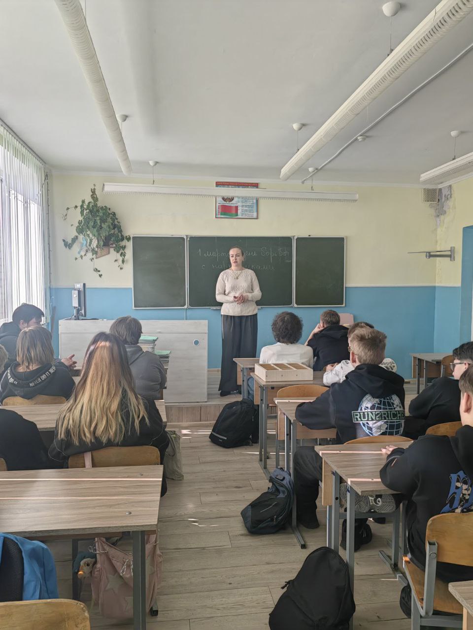 03 марта 2026 года в рамках реализации мероприятий, посвящённых Международному дню борьбы с наркоманией и незаконным оборотом наркотиков, заместитель директора по учебно-воспитательной работе Максимук С.Г. для учащихся учебной группы № 554 провела тематический информационный час. Ребятам было рассказано об основных путях втягивания несовершеннолетних в незаконный оборот наркотиков, об ответственности за данные деяния. В конце мероприятия ребята смогли ознакомиться с копией приговора суда по уголовному делу по 328 статье УК Республики Беларусь, обвиняемые по которому являлись несовершеннолетними учащимися.