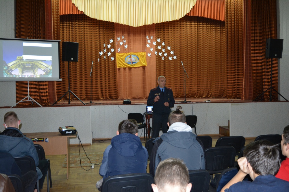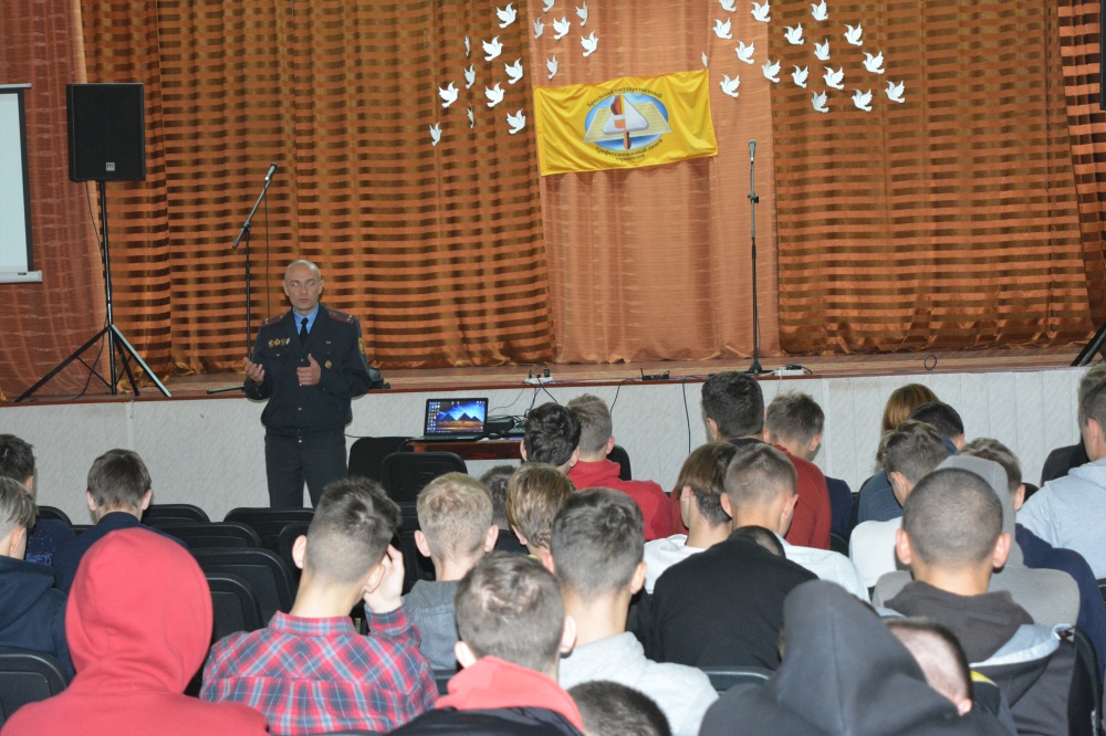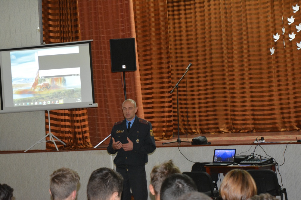 В актовом зале прошла беседа участкового инспектора ИДН ОВД Администрации Ленинского района г. Бреста Дорошука В.Т. по профилактике участия учащихся в массовых беспорядках и несанкционированных акциях.