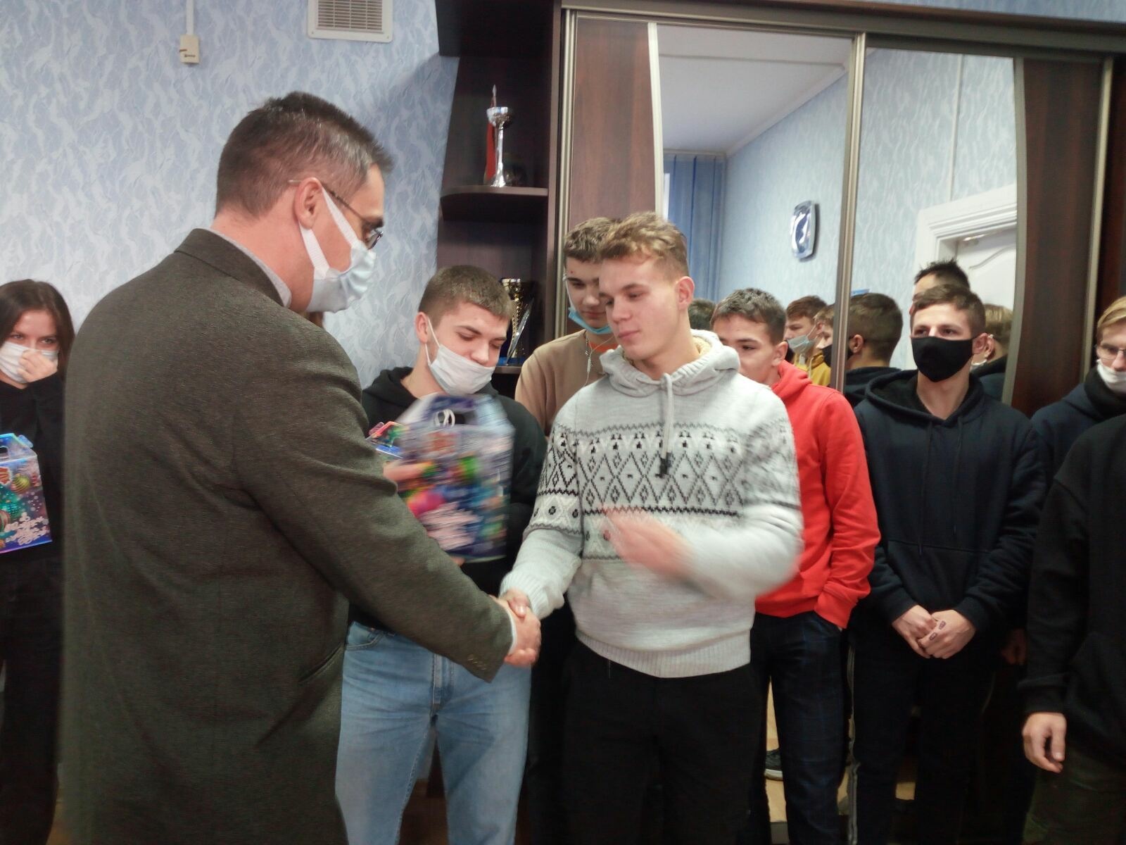 Директор лицея Шипилов А.М. поздравил учащихся-сирот и учащихся, оставшихся без попечения родителей, с наступающим Новым годом и вручил им подарки.
