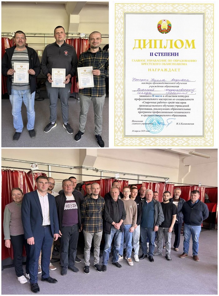 30.04.2025 на базе Пинского государственного колледжа строителей прошёл областной конкурс профессионального мастерства среди мастеров производственного обучения по специальности "Сварочные работы". В конкурсе приняли участие 15 представителей колледжей. Наше учебное заведение представлял старший мастер Котецкий Кирилл Андреевич. По итогам конкурса Кирилл Андреевич награждён Дипломом ll степени главного управления по образованию.