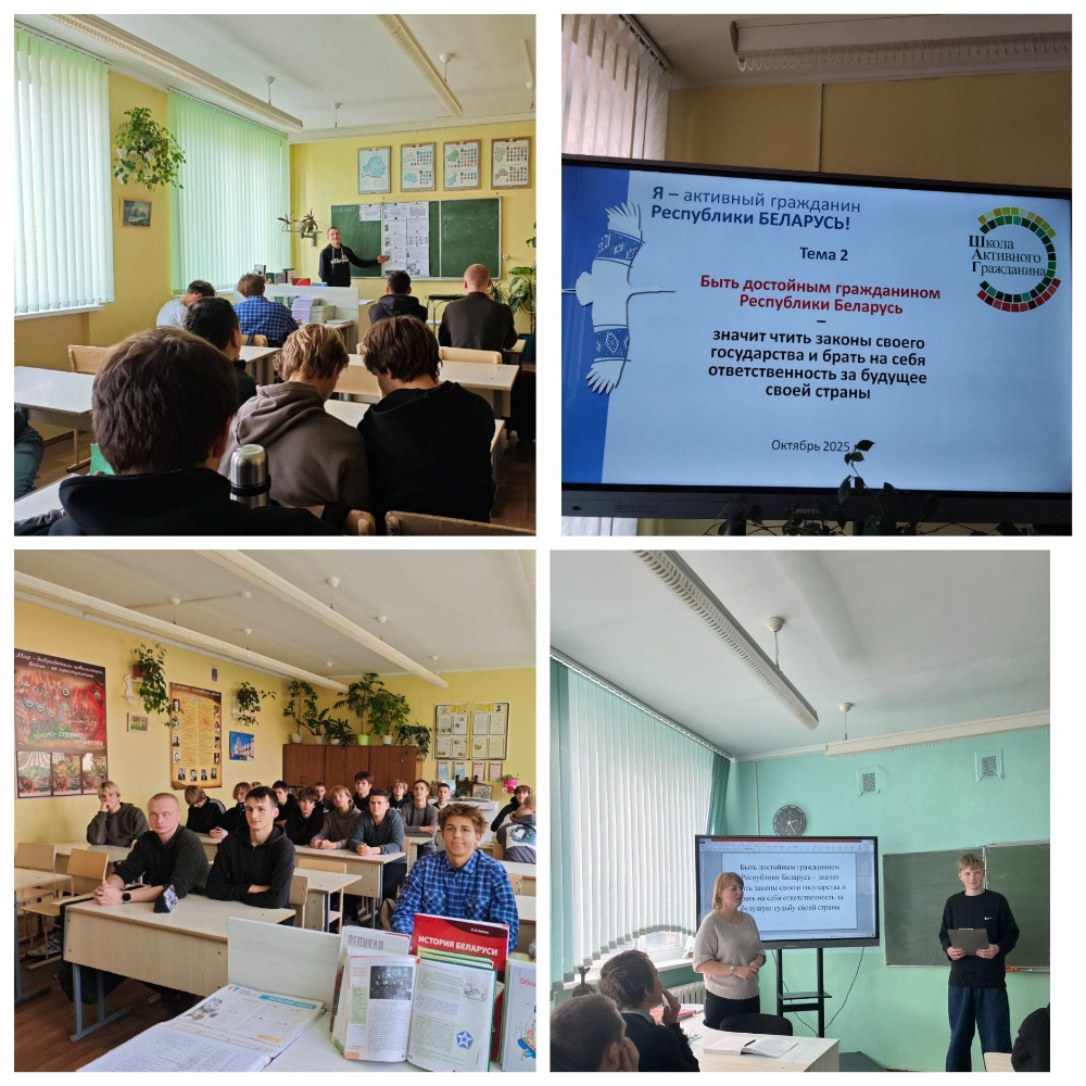 23 октября 2025 года в рамках реализации информационно-образовательного проекта «ШАГ» (Школа Активного Гражданина) в учебных группах колледжа прошли информационный часы не тему: «Быть достойным гражданином Республики Беларусь – значит чтить законы своего государства и брать на себя ответственность за будущую судьбу своей страны».