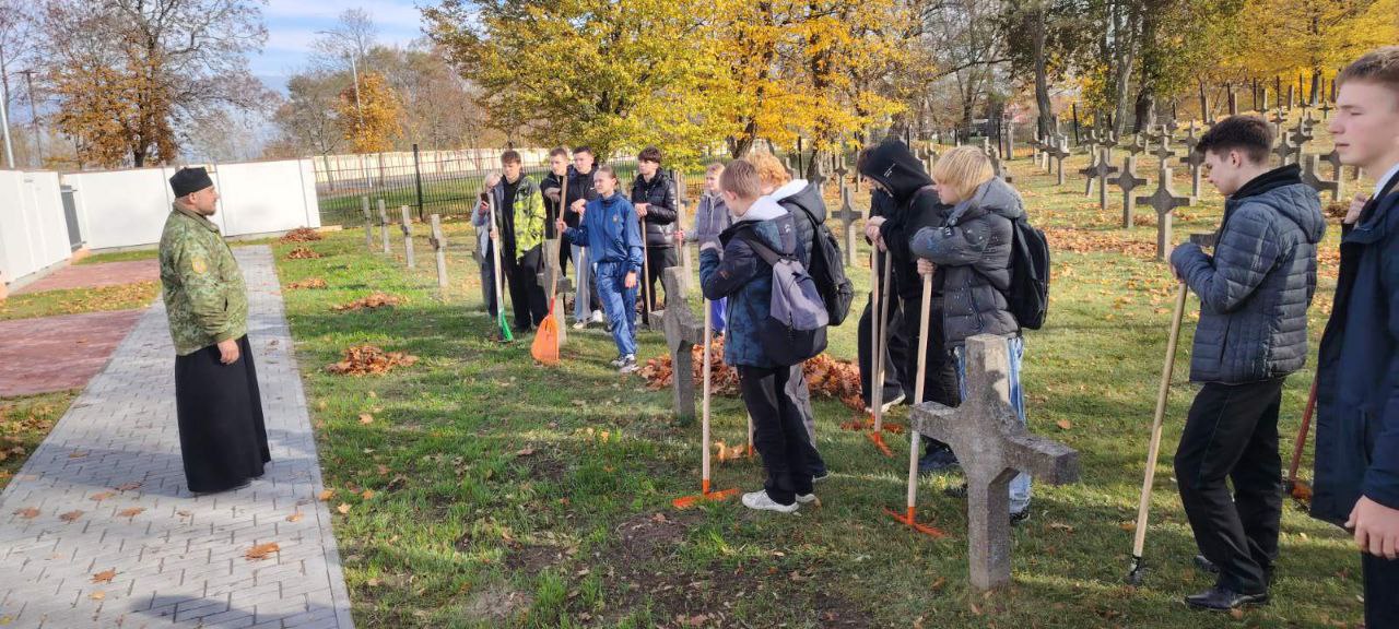 В рамках реализации Программы сотрудничества между Министерством образования Республики Беларусь и Белорусской Православной Церковью на 2020 – 2025 годы учащиеся колледжа 30 октября 2025 года в сопровождении педагога-психолога Лесь А.С. посетили Храм в честь святых преподобных Александра Пересвета и Андрея Осляби. Настоятель храма отец Евгений рассказал учащимися об истории храма, а также провёл беседу на тему «Что такое быть «патриотом»?!», После встречи ребята помогли в уборке Гарнизонного кладбища.