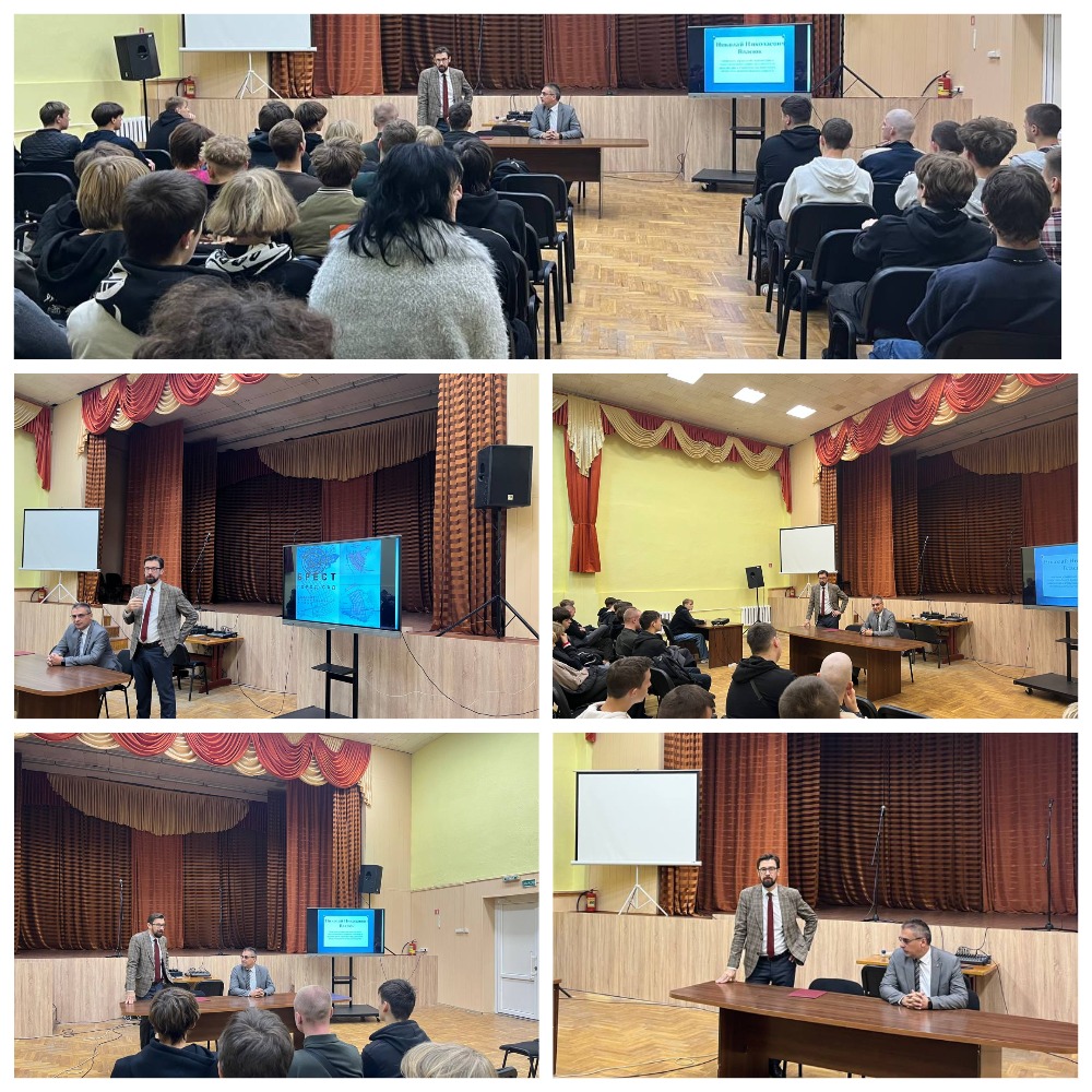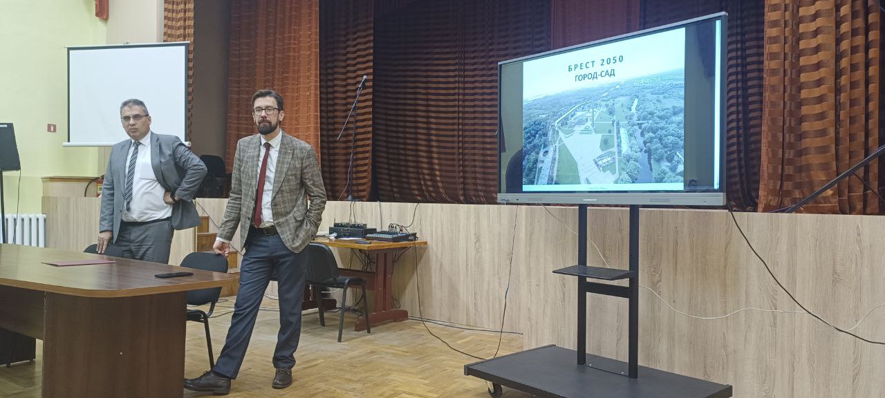 30 октября 2025 года в актовом зале колледжа прошла встреча учащихся с начальником управления архитектуры и территориального развития комитета по архитектуре и строительству Брестского областного исполнительного комитета Николаем Николаевичем Власюком на тему «Брест 2050. Город-сад», в ходе которой ребята узнали об истории и особенностях застройки нашего Любимого Бреста, а также – о планах будущего градостроительства. В конце встречи ребята и работники колледжа задали волнующие их вопросы по благоустройству микрорайонов Речица и Юго-Запад.