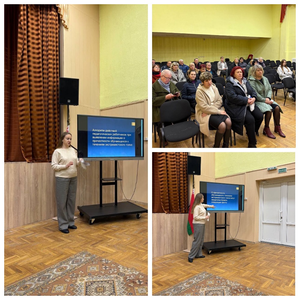 8 апреля 2026 года в рамках заседания методического объединения кураторов и цикловой комиссии преподавателей профессионального компонента и мастеров производственного обучения заместитель директора по учебно-воспитательной работе Максимук С.Г. ознакомила работников колледжа с Алгоритмом действий педагогических работников при выявлении информации о причастности обучающихся учреждений образования к течениям экстремистского толка.
