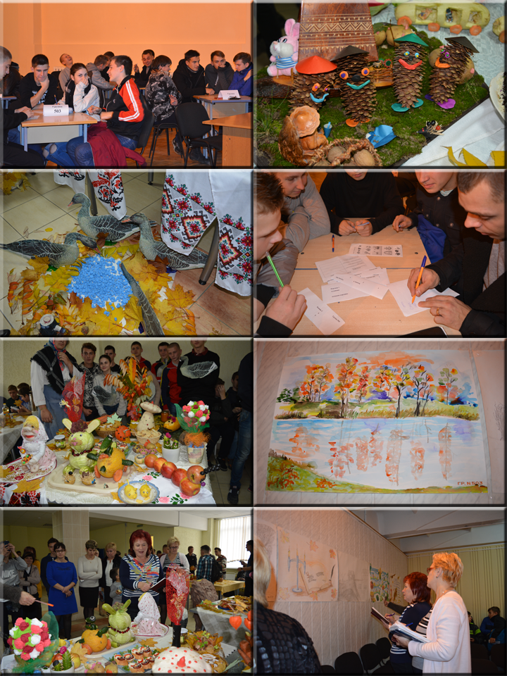 18 октября в лицее состоялся праздник Осени. На ярмарке было представлено множество поделок из природного материала, выпечка и различные дары осени. В актовом зале была организована выставка газет "Осенняя фантазия" в которой учащиеся проявили своё творчество. А проявить свои знания и интеллектуальные способности им представил возможность брейн-ринг "Золотая осень", в котором соревновались учащиеся 1 курса. По результатам оценки компетентным жюри лучшие столы на ярмарке представили группы 503 и 505, лучшей газетой признана работа группы 503, а в брейн-ринге лучшей оказалась группа 506.