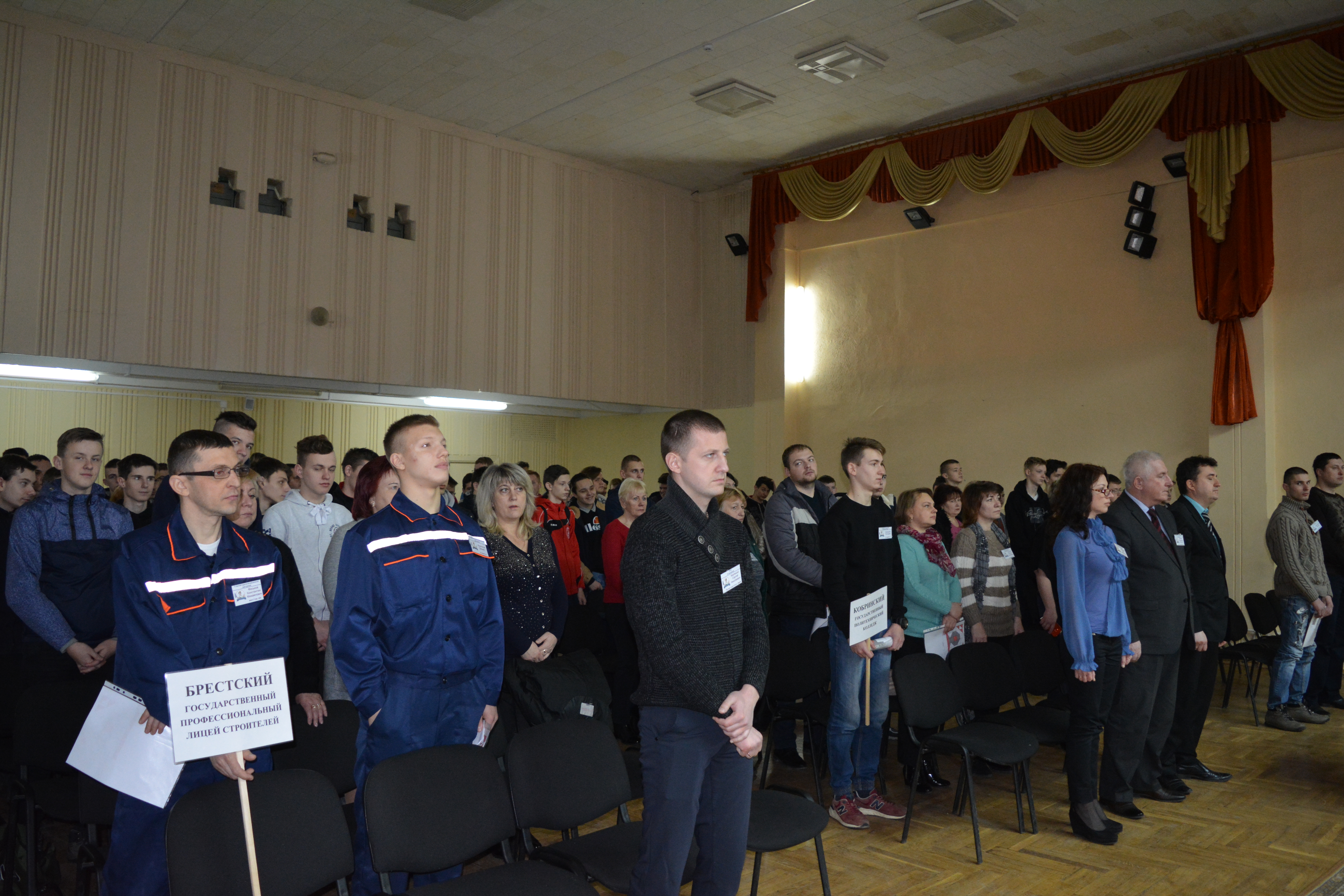 Учащиеся лицея рассказали о важной и нужной во все времена профессии строителя. Директор ГУ "БОУМЦПО" Шкилюк Дмитрий Владимирович озвучил цели и задачи конкурса. С напутственным словом к участникам конкурса обратился председатель жюри Карпешко Сергей Николаевич, главный инженер филиала СМУ №1 КУП "Брестжилстрой" и директор лицея Войтюк В.П.