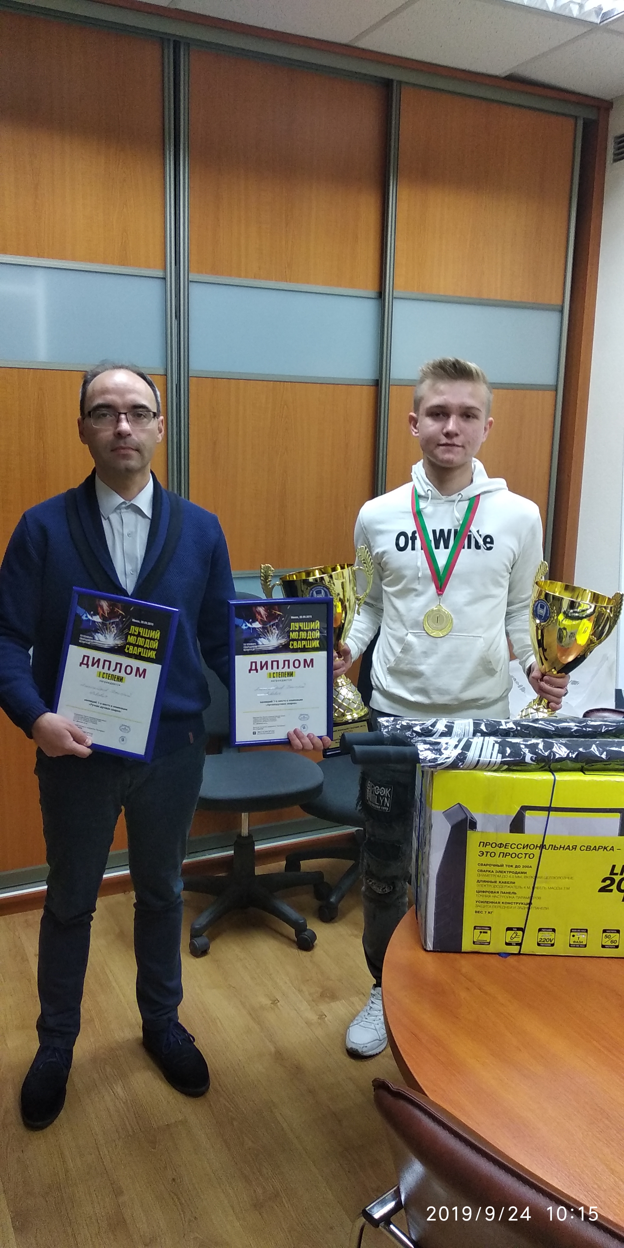 Учащийся группы № 512 Александров Дмитрий под руководством мастера производственного обучения Котецкого Кирилла Андреевича принял участие в конкурсе среди учащихся и выпускников профессиональных лицеев и технических колледжей «Лучший молодой сварщик-2019» (возраст участников от 17 до 25 лет). Александров Дмитрий занял 1 место в номинациях «Аргонодуговая сварка» и «Ручная дуговая сварка».